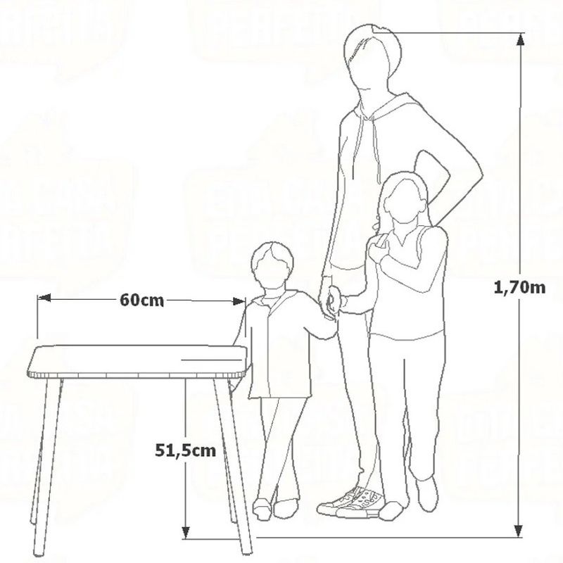 Ela é fabricada em MDF 15mm, e os pés em madeira pinus de alta qualidade, garantindo maior durabilidade e facilitando muito a limpeza. As crianças vão poder fazer suas atividades com segurança e conforto.