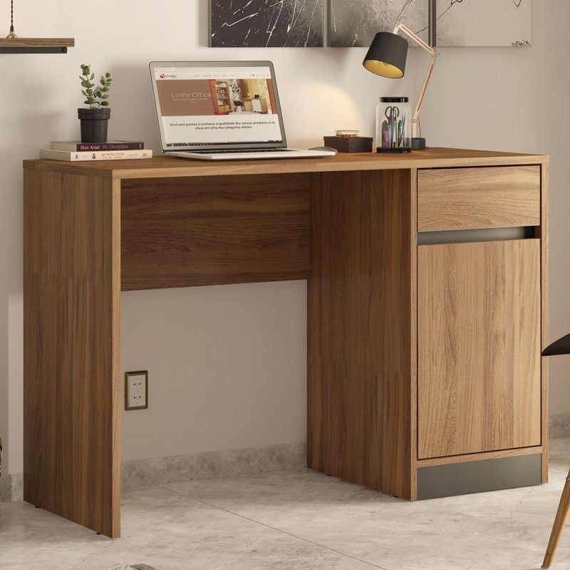 Com a Mesa Para Computador Escrivaninha Office Morada, seu ambiente de estudo ou trabalho ficará completo. Isso porque, além da bancada para notebook ou computador, ela possui dois compartimentos extremamente funcionais, sendo uma gaveta com um ótimo espaço, facilitando a organização dos pertences mais utilizado no dia a dia e uma porta para guardar livros e objetos maiores.