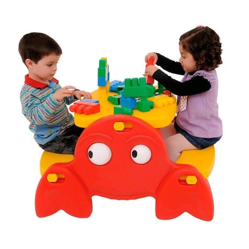 Mesa Sirizinho Xalingo A Mesa Sirizinho Xalingo é colorida e segura, reúne os amiguinhos para as brincadeiras, além de ser um espaço perfeito para as crianças pintarem e desenharem. Temática em forma de siri, seus olhos giram e podem formar expressões. Ideal para até 4 crianças. A Mesa Sirizinho Xalingo é a nova companhia da garotada!