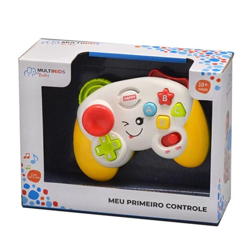 Meu Primeiro Controle De Video Game Luzes e Som - MultikidsInformações do Produto:Com o Meu Primeiro Controle Multikids, seu bebe aprendera formas, cores e números de forma divertida. Conta com musicas divertidas, números e alfabeto. Meu Primeiro Controle estimula a coordenação motora, criatividade e imaginação do seu bebêItens Inclusos: 1 Controle com luzes e com;Dimensões aproximadas: 16,5 x 8 x 21,5 cmRecomendado: 18 meses+Alimentação:2 Pilhas 1.5 AAMaterial composição:Plástico.Certificação Segurança: Selo Inmetro.Garantia do Fabricante: 03 meses contra defeitos de fabricação.Aviso:Imagens meramente ilustrativas. As cores podem variar entre as imagens mostradas acima e o produto.