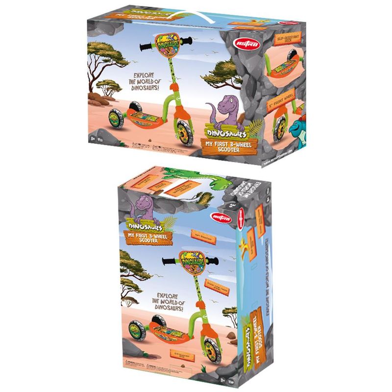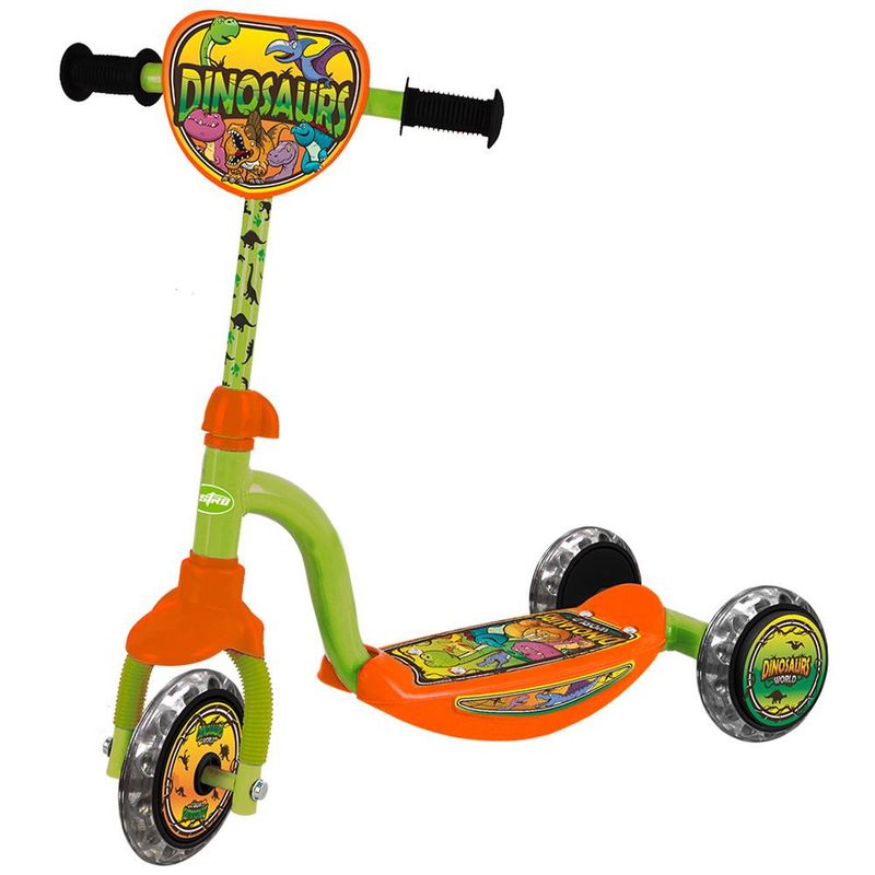 Que tal se aventurar com o Meu Primeiro Patinete Astro Dinossauro - Preto/Verde/Laranja? O Meu Primeiro Patinete garante estabilidade e segurança na hora da brincadeira. Ele tem design moderno com dinossauro. Possui 3 rodas LED, base antiderrapante e manopla emborrachada.