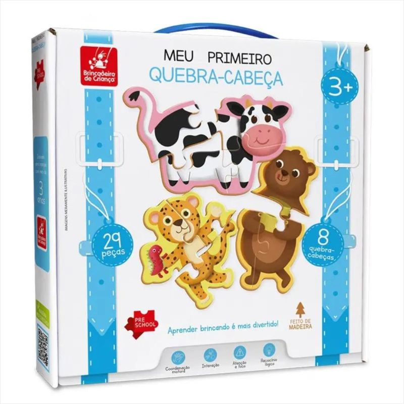 Quebra-Cabeça Meu Primeiro Animais Bichinhos Madeira - Brincadeira de Criança Desenvolvimento cognitivo e diversão em um único produto! Seja introduzindo seu pequeno no mundo dos quebra-cabeças ou aprimorando suas habilidades, o Quebra-Cabeça Meu Primeiro Animais Bichinhos Madeira é a escolha ideal. Composto por 8 quebra-cabeças educativos feitos de 29 peças de madeira coloridas, cada um apresentando um animal diferente, este brinquedo auxilia no desenvolvimento da coordenação motora fina, habilidades manuais e destreza da criança. Além disso, montar os quebra-cabeças estimula a concentração e foco, habilidades essenciais para o sucesso acadêmico e profissional no futuro. Ideal para crianças a partir de 3 anos, este material escolar proporciona momentos de interação, tornando-se uma ferramenta valiosa para o desenvolvimento cognitivo e emocional.   Diferenciais: Composto por 8 quebra-cabeças progressivos de animais diversos Feito em madeira de alta qualidade Estimula a coordenação motora e habilidades cognitivas Facilita a interação social e desenvolvimento emocional   Mais sobre o Produto: Desenvolve habilidades motoras e cognitivas Estimula a concentração e foco Promove a interação social Feito com materiais seguros e duráveis   Dicas de Uso: Incentive a criança a montar o quebra-cabeça de forma independente para estimular a resolução de problemas. Utilize o brinquedo como uma atividade em família para promover a interação e o trabalho em equipe. Após a montagem, explore as figuras dos animais para enriquecer o aprendizado.   Ficha Técnica: Marca: Brincadeira de Criança Conteúdo da Embalagem: 8 Quebra-Cabeças Material: Madeira/MDF Idade Recomendada: A partir de 3 anos Referência: 2211 Certificação Inmetro: Sim Imagens meramente ilustrativas. As cores podem variar das apresentadas na embalagem.