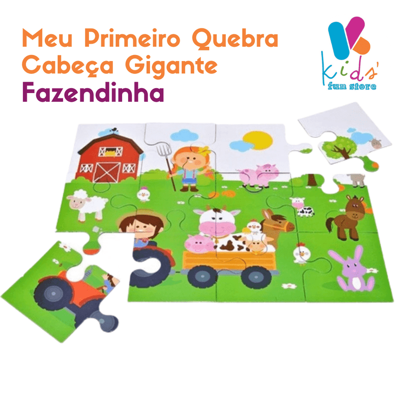 Meu Primeiro Quebra Cabeça Gigante Fazendinha - Coordenação Motora Raciocínio Lógico - Madeira - Bate Bumbo