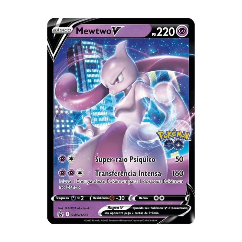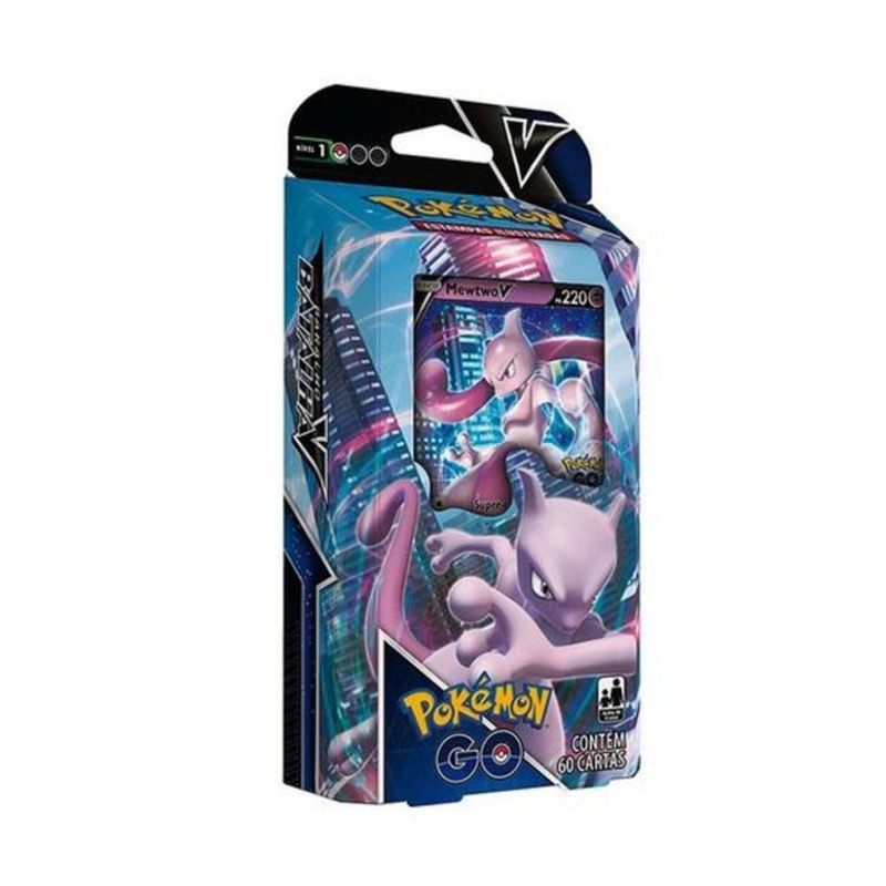 Da linha Pokémon Go, que terá diversão garantida, através de batalhas, competição entre os personagens e seus poderes! Starter Deck Batalha V Pokémon GO Mewtwo V Coloque Energia em movimento com Mewtwo V! Mewtwo ataca de forma grandiosa e em seguida, fortalece seu outros Pokémon ao mover Energia para o seu Banco! Execute alguns ataques rápidos com Starmine e Cinccino, coloque mais Energia em jogo com Indeedee e faça com que Hatterene troque seu Pokémon Ativo para que você possa acertar um grande golpe com Lunatone. Cartas de Treinador úteis, como Módulo Atrair e Incubadora de Ovo, tornam mais fácil de encontrar o Pokémon que pode colocar você no caminho da vitória! Caixa de cartas Mewtwo V contém: