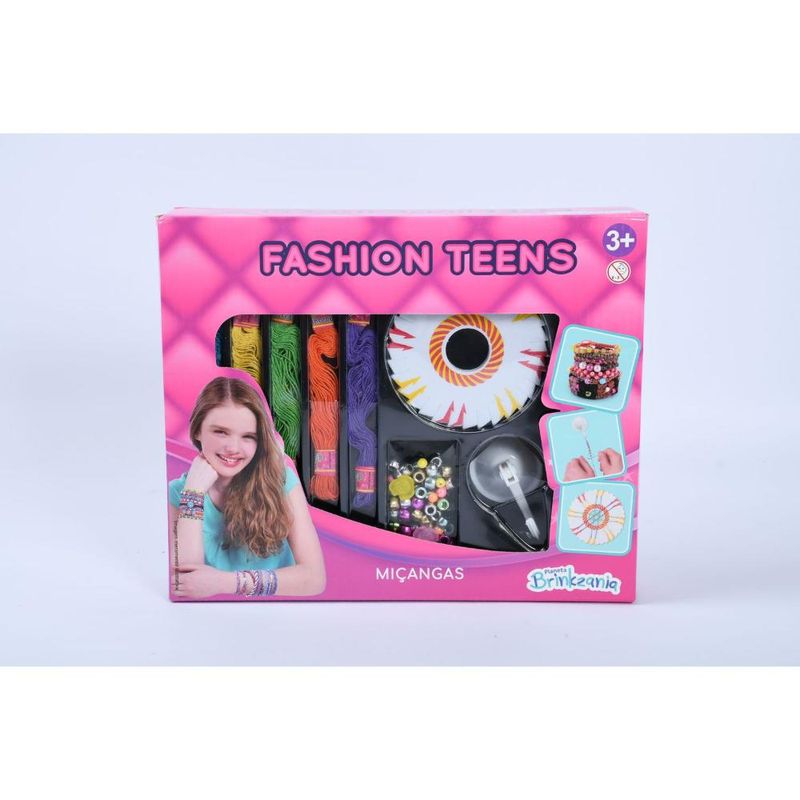 Ficha Técnica:Marca: Brinkzania;Nome do produto: Miçangas Fashion Teens Pulseiras Diversas;Idade recomendada: A partir de 3 anos;Selo Inmetro: CE-BRI/INNAC-02478-04A;Contém: 1 estojo de miçangas.