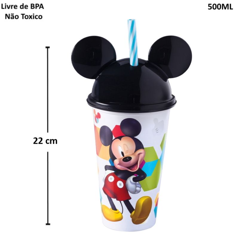 Copo com Canudo Mickey com Orelhas - Premium Plasútil