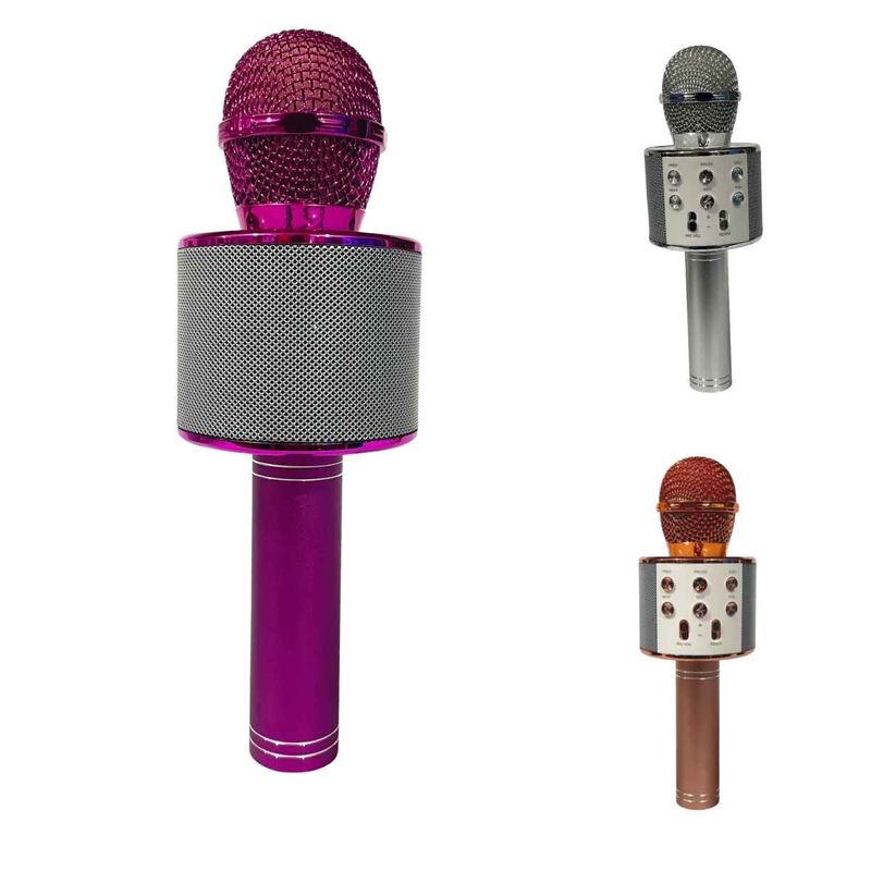 Prepare-se para o show! Esse microfone sem fio e bluetooh possui uma caixa de som embutida.