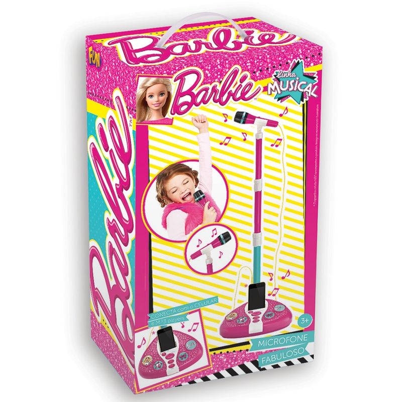 Venha soltar a voz com a Barbie! O Microfone Fabuloso Fun Barbie traz muita diversão para as brincadeiras. Com ele a garotada brinca e pratica seus dons artísticos. O Microfone, como tudo da Barbie, é lindo e cheio de charme. Possui função caixa de som. As crianças podem conectar o celular ou MP3 Player e cantar junto com suas músicas favoritas!