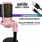 Captura sua voz perfeitamente e com precisão;São 7 opções de luzes RGB;Possui saída para fones de ouvido;Plug and Play;Microfone: Capacitivo de 14mm;O seletor de volume escondido atrás do microfone torna fácil e rápido o ajuste de ganho do microfone para alcançar o seu propósito, ou você pode ajustar o nível de volume através de um software externo.Acessórios externos - o filtro pop antiplosivo de metal bloqueia o som de disparo, o que melhora a estabilidade do chat. O suporte de choque é combinado com o corpo do microfone de PC branco para reduzir melhor a vibração de baixa frequência causada por batidas ou empurrões. Estes acessórios para jogos de microfone do YouTube reduzem o ruído indesejado, dando aos seus colegas de time uma audição confortável.