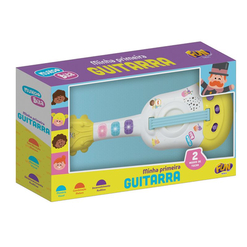 A introdução perfeita para o mundo da música! A Mundo Bita Minha Primeira Guitarra da Fun é o instrumento perfeito para crianças que desejam começar a explorar o mundo da música de forma divertida e educativa. Com um design vibrante e atrativo, esse guitarra infantil proporciona uma experiência musical única, inspirada no universo encantador do Mundo Bita. Com luzes, ritmos de bateria, piano e guitarra, além de músicas do Bita, essa guitarra infantil traz uma variedade de opções para estimular a criatividade e o desenvolvimento musical das crianças. Com suas diferentes configurações, a Mundo Bita Minha Primeira Guitarra permite que a criança explore diferentes modos. Basta pressionar as teclas correspondentes para criar músicas, acompanhar ritmos e explorar novos sons. Além disso, a Mundo Bita Minha Primeira Guitarra estimula a atenção, audição e coordenação motora das crianças. Ela oferece uma forma lúdica de aprender e desenvolver habilidades musicais. Idade recomendada: A partir de 18 meses. Dicas de uso: Encoraje a criança a explorar os diferentes modos da guitarra, para que ela possa experimentar diferentes sons e ritmos. Convide a criança a tocar junto com as músicas do Bita, estimulando o desenvolvimento do ritmo e da coordenação motora. A Mundo Bita Minha Primeira Guitarra - Fun é a introdução perfeita para explorar o mundo da música de forma divertida e educativa. Adquira já este instrumento encantador e promova o desenvolvimento musical das crianças!