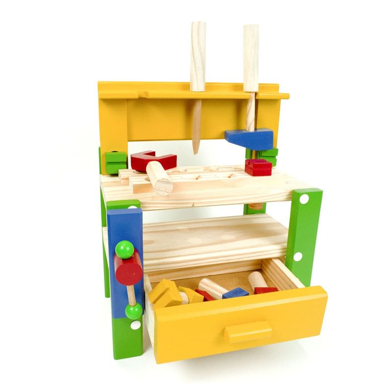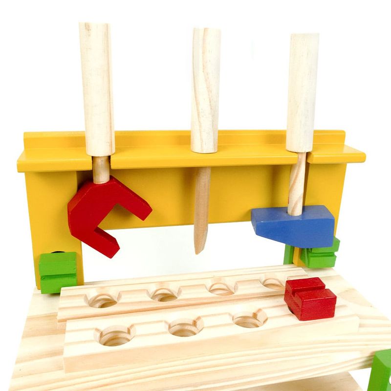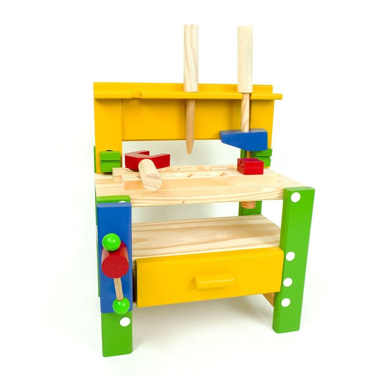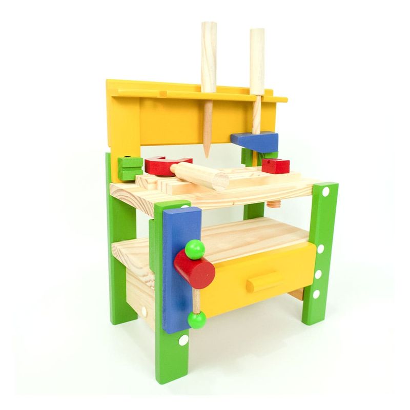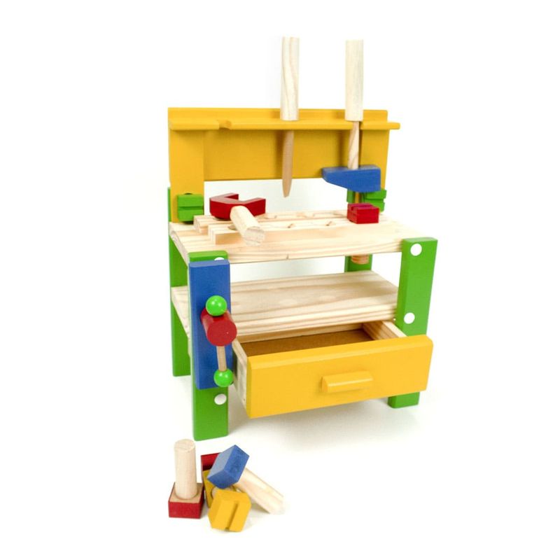O brinquedo perfeito para o seu mini marceneiro! Se o seu pequeno ama brincar de construir, montar e desmontar, a bancada de ferramentas é o que faltava na sua brinquedoteca! Feita em madeira reflorestada e pintada com tinta atóxica para uma brincadeira segura, a oficina é resistente e durável, garantindo a diversão por muito tempo. São 14 ferramentas para soltar a imaginação com cenários lúdicos e aprender sobre mecânica e marcenaria de forma divertida. A brincadeira também estimula o desenvolvimento das habilidades cognitivas, coordenação motora e raciocínio lógico. Contém: 1 Chave de boca.