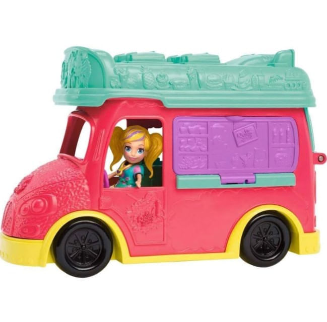 Com a boneca Polly Pocket Food Truck da Mattel a criançada poderá ter o seu próprio empreendimento e convidar os amigos para uma tarde de guloseimas! O brinquedo acompanha diversos acessórios que ajudam os pequenos a criar diferentes histórias e receitas. O Food Truck levanta o teto e se transforma em uma lanchonete com uma cozinha móvel para preparar seus quitutes. Além disso, a boneca ainda pode organizar mesas e cadeiras e receber seus clientes famintos com muita alegria. Certificado pelo INMETRO, a Polly Pocket Food Truck é um brinquedo seguro e resistente.