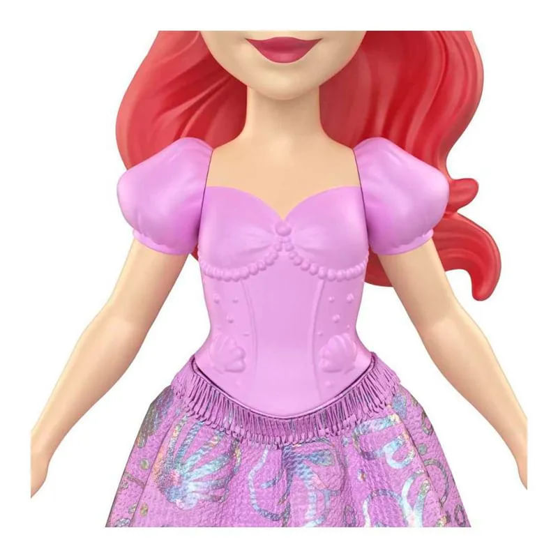 Conheça a boneca da Ariel, inspirada na princesa determinada e de espírito livre do filme A Pequena Sereia, da Disney, em um tamanho adorável com articulações móveis! Esta pequena boneca articulada brilha com seu visual característico, que inclui uma saia macia removível com detalhes metálicos. A boneca não fica em pé sozinha. As cores e as decorações podem variar. Inspirada na personagem animada do amado filme da Disney A Pequena Sereia, essa pequena boneca da Ariel está pronta para todas as aventuras da vida!
