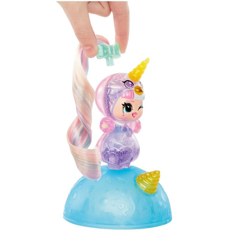 Qual unicórnio mágico você encontrará? Desembrulhe as lindas surpresas para encontrar sua pequena e seus acessórios combinando! Inclui 1 Unicórnio, 2 “poções” coloridas, um chifre de unicórnio, orelhas de unicórnio, penteado, tapete de brincar, funil e chifre decorativo de unicórnio para a bola.