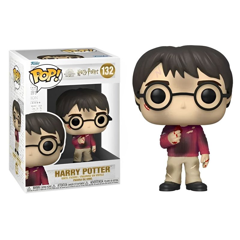 Harry Potter é o herói dos livros e filmes de Harry Potter. Neste mundo onde bruxos e bruxas existem, mas vivem escondidos do mundo normal, Harry é um jovem órfão inglês. Ele foi criado por seu tio e tia após a morte de seus pais. Aos onze anos, ele descobre que é um bruxo como seus pais antes dele, que morreram lutando contra o terrível bruxo Voldemort. A Funko retratou Harry aqui em uma das últimas cenas do primeiro filme quando ele consegue pegar a pedra na mão. Ele usa calça bege e um suéter vermelho, ambos rasgados e queimados depois de passar por muitas provações para chegar a esse ponto. Encontramos seu cabelo castanho, seus óculos redondos e, claro, a cicatriz na testa. Por fim, encontramos a pedra lembrando um rubi ou uma granada, de um vermelho profundo.