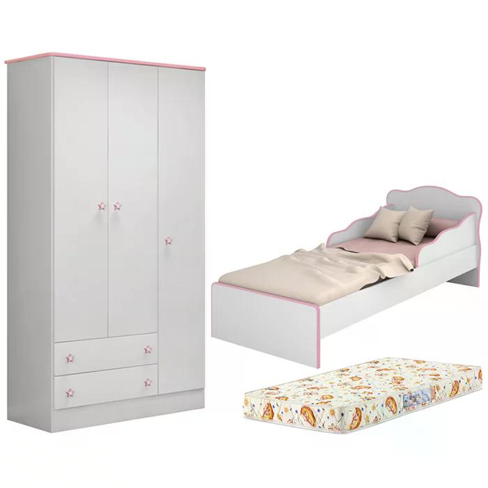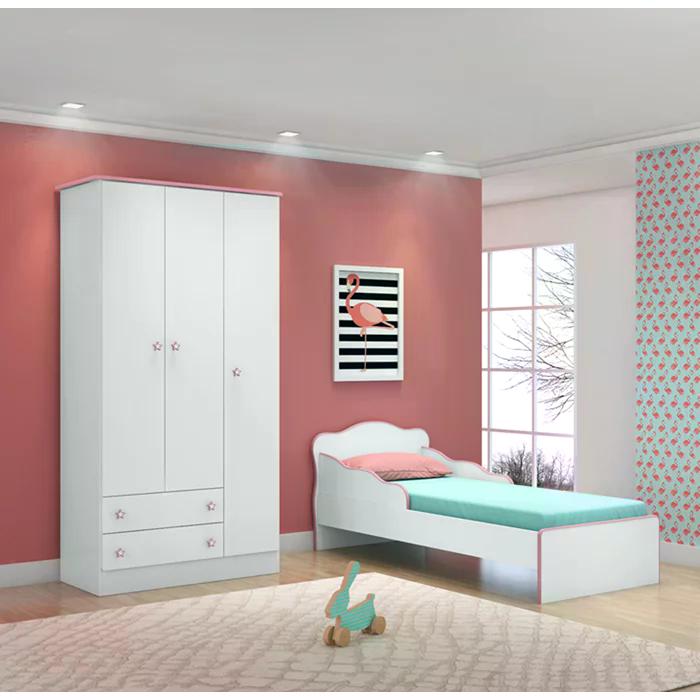 Jogo de quarto infantil, com um design lindo e sofisticado, deixando o ambiente ainda mais moderno e aconchegante. Estrutura em MDP de 15mm e 12mm, feito com material ecológicamente correto, para melhor durabilidade e resistência às peças, pintura atóxica livre de materiais pesados, e excelente acabamento UV (Brilho). Composto por portas de bater com dobradiças metálicas, cabideiro oblongo metálico, ótima divisão interna para roupas, gavetas externas com corrediças metálicas, puxadores em plástico com formato de estrela, estrado da mini cama em madeira pinus, duas laterais de proteção, cabeceira e peseira com cantoneiras plásticas, bordas arredondadas com um ótimo acabamento em perfil PVC, colchão com espuma 100% poliuretano flexível, revestido em tecido poliéster com bordado contínuo, densidade D18, e tratamento antialérgico com face em plástico que protege a superfície contra a penetração de líquidos. Mais produtos da linha infantil Doce Sonho, você encontra em nosso site, podendo fazer a composição completa para o quarto do seu (sua) filho (a). Estes móveis chegarão em sua casa separados em 05 volumes.