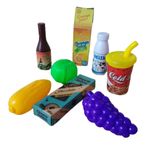 - Produtos de plástico- Conjunto de carrinho com mais 08 produtos de alimentos ( sendo plástico e papelão )