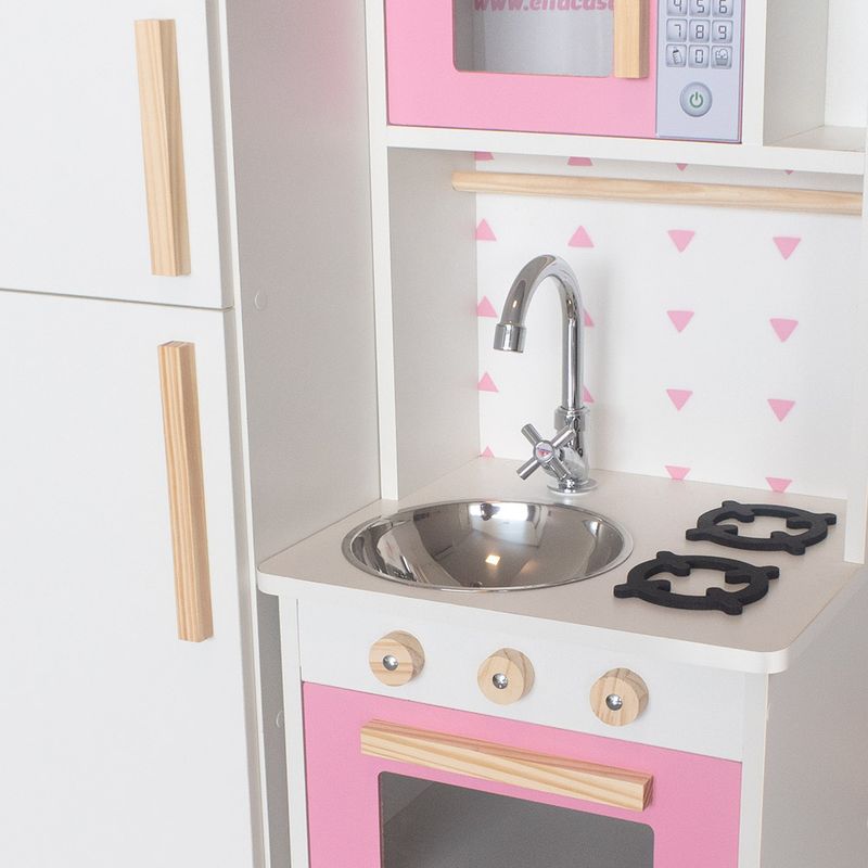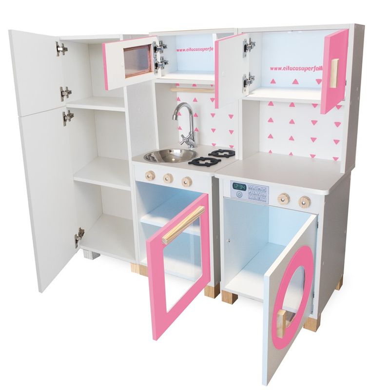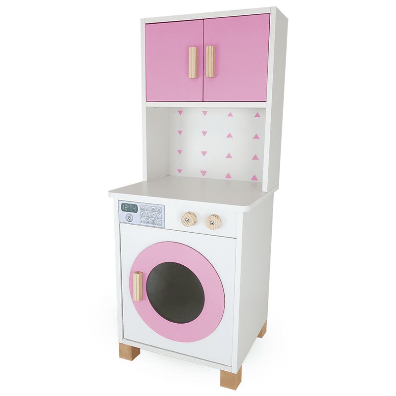 Com a nossa encantadora Mini Cozinha Infantil, os pequenos poderão aperfeiçoar suas habilidades culinárias, e preparar deliciosas receitas para toda a família! Enquanto os adultos cozinham de verdade, as crianças exploram o faz de conta criando suas próprias receitas, aguçando assim a imaginação e a criatividade! Com um lindo cooktop de 2 bocas e 3 botões que giram, pia com torneira, portas que abrem e fecham, micro-ondas e forno com visualização interna, armário com espaço para guardar os utensílios de cozinha, e porta toalha, a brincadeira fica completa! Confeccionada em MDF de 15mm, a mini cozinha infantil é muito resistente, permitindo que seja usada por muito tempo. Além disso, tem um charme todo especial, se encaixando bem em qualquer ambiente da casa! O kit inclui também a máquina de lavar, onde os pequenos poderão se esbaldar em atividades divertidas e repletas de possibilidades, aproveitando todo o conforto, beleza e durabilidade oferecidos em nossa linha de móveis infantis. Dimensões Cozinha: Largura: 38 cm
