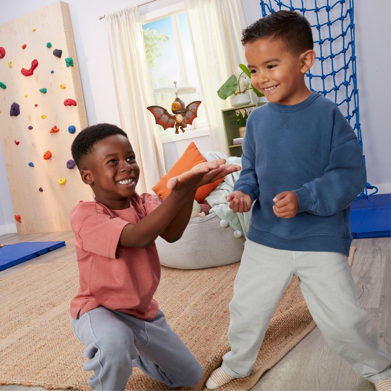 DESEMBALAR COM VOO ÉPICO: Ajude o dinossauro menor a escapar sacudindo e cutucando o grande dinossauro adormecido. Uma experiência de desembalagem inesquecível.
