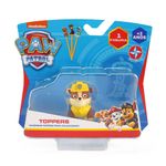 Toppers é uma figura de 7 cm da personagem Rubble da animação infantil Patrulha Canina. São 6 opções de personagens que podem ser usados como acessórios para lápis, canetas e lapiseiras, sendo possível levar seu personagem preferido para todos os lugares. As figuras também são ideais para colecionar e embarcar nas aventuras da turma. Cada embalagem contém apenas 1 Mini Figura, (unitária) que pode variar a cor e o modelo.