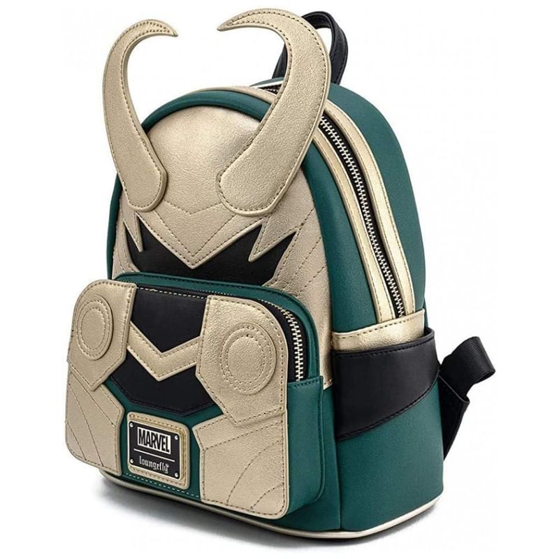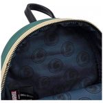 Mini mochila em couro sintético com apliques e detalhes bordados.