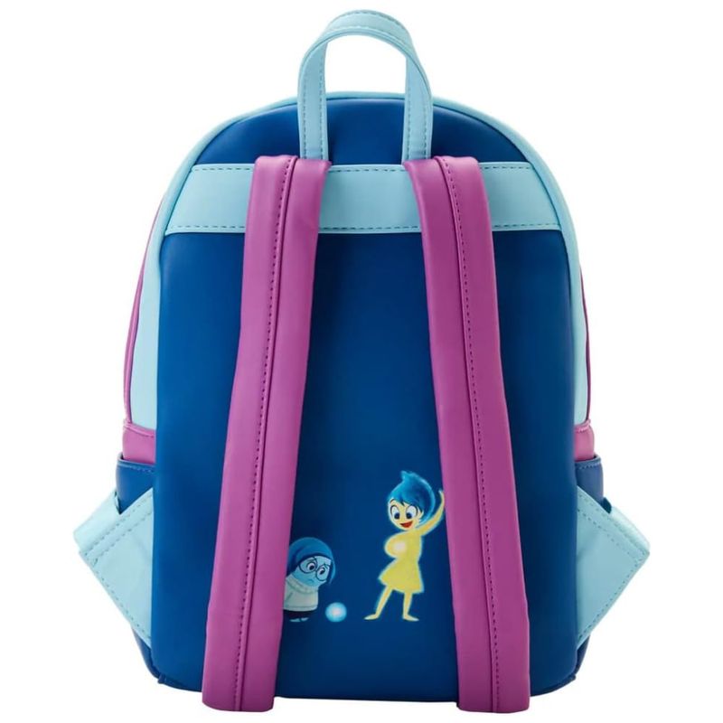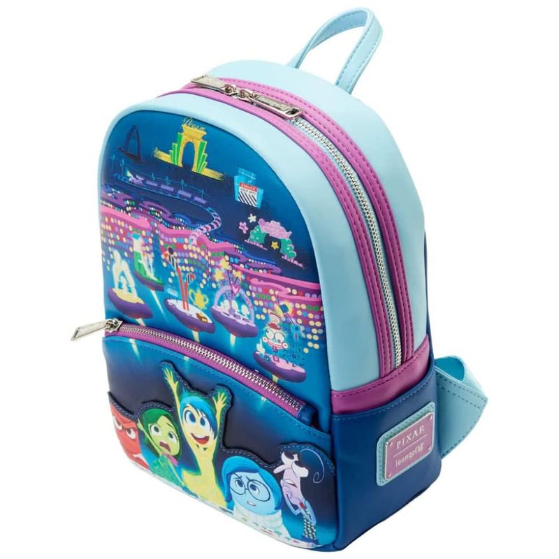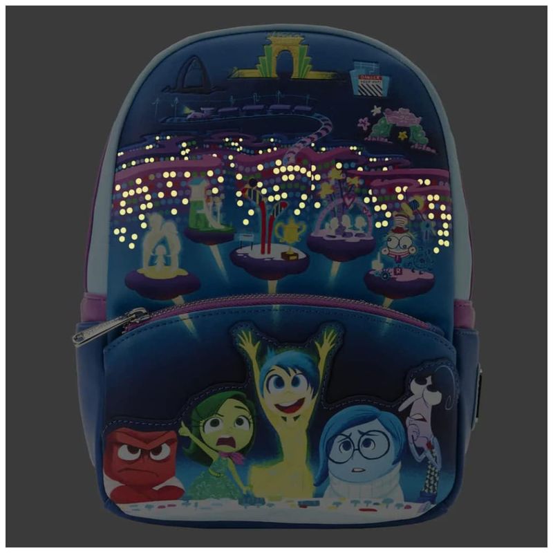 Quando a vida fica um pouco carregada emocionalmente, é importante sentir as coisas. A mini mochila Loungefly Inside Out Control Panel oferece uma visão de perto do eu interior de Riley. No bolso frontal com zíper da mochila, Raiva, Nojo, Alegria, Tristeza e Medo ficam atrás de um painel de controle que inspira os pensamentos de Riley. Por trás das emoções, os detalhes internos da mente de Riley são revelados. Olhe atentamente e você verá as Ilhas da Personalidade, da Memória de Longo Prazo, da Linha do Pensamento, do Subconsciente, das Produções dos Sonhos, do Pensamento Abstrato e da Terra da Imaginação. À medida que a luz do dia desaparece, as memórias centrais brilham no escuro. Vire a mochila para ver uma aparição de Alegria e Tristeza enquanto coletam algumas das principais memórias de Riley.