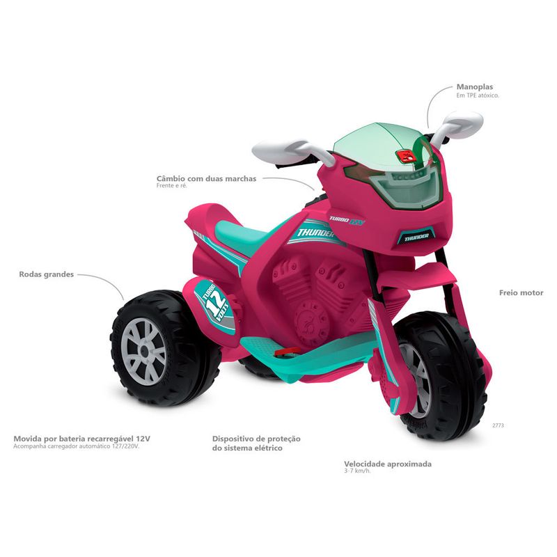 Mini Veículo Elétrico - 12V - Super Moto Thunder Eletrica - Bandeirante - Pink