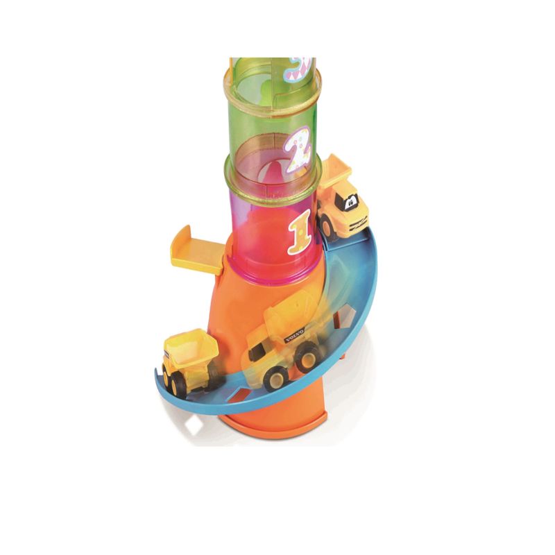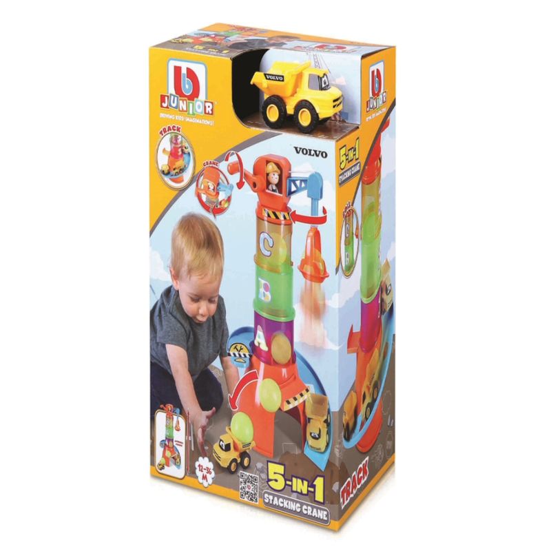 O Stacking Crane ensina as crianças a comparar o tamanho e as recompensa por empilhar o guindaste na ordem correta. Simplesmente empilhe as peças do maior para o menor, e o capataz de construção pode carregar a bola e vê-la rolar pelas peças translúcidas até cair no escorregador e no caminhão basculante que está esperando. Inclui 01 veículo Volvo. 01 bolinha verde. Peças para montagem.