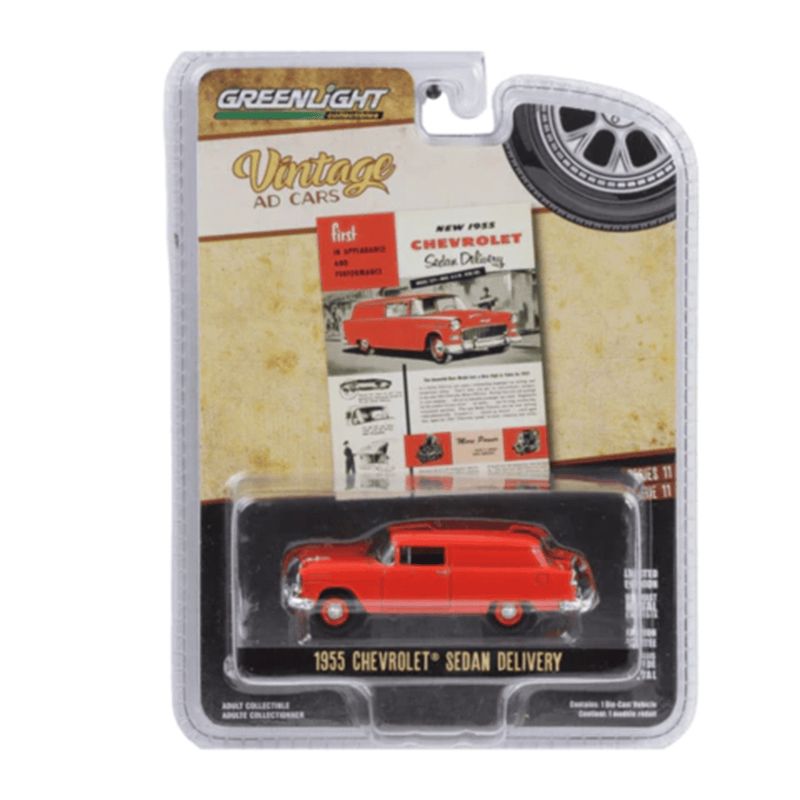 Greenlight – 1955 Chevrolet Sedan Delivery (Vintage AD Cars Série 11 – Escala 1:64) Este modelo da Greenlight representa o clássico Chevrolet Sedan Delivery de 1955, integrante da Série 11 da coleção Vintage AD Cars. Em escala 1:64 e com aproximadamente 7 cm de comprimento, esta miniatura homenageia os veículos comerciais da década de 1950, com visual publicitário retrô e acabamento nostálgico. Especificações do Produto Fabricante: Greenlight Linha/Série: Vintage AD Cars Série 11 Modelo: Chevrolet Sedan Delivery 1955 Montadora: Chevrolet Cor: Vermelho Escala: 1:64 Comprimento aproximado: 7 cm Composição: Metal, plástico e borracha Edição limitada: Sim Idade recomendada: A partir de 3 anos Dimensões da embalagem: 5,5 cm x 14,5 cm x 19 cm Destaques da Miniatura Pintura vermelha com grafismos publicitários vintage e detalhes fiéis ao estilo comercial da época Design clássico com carroceria fechada, frente imponente e proporções autênticas do modelo de 1955 Parte da coleção Vintage AD Cars, dedicada à reprodução de veículos históricos com identidade visual de anúncios antigos Estrutura resistente e acabamento detalhado, ideal para exposição temática ou coleções de veículos comerciais retrô Essa miniatura é ideal para colecionadores que valorizam história, publicidade clássica e autenticidade sobre rodas.