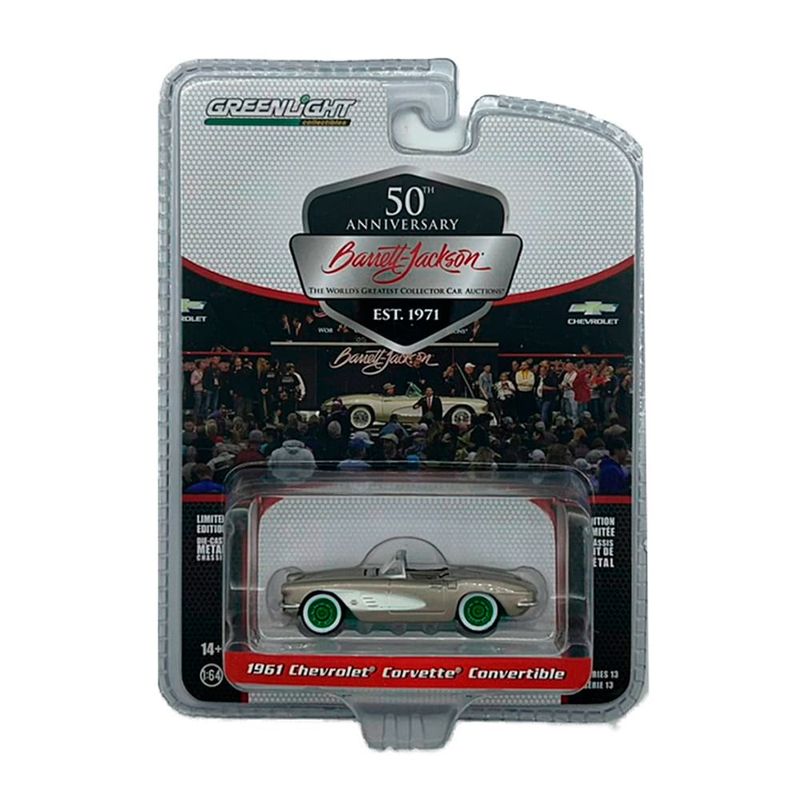 Greenlight – 1961 Chevrolet Corvette Convertible Special Dourado (Barrett-Jackson Scottsdale Edition Série 13 – Escala 1:64) Este modelo da Greenlight celebra o clássico Chevrolet Corvette Convertible 1961 em uma edição especial dourada, inspirada nos veículos de destaque do famoso leilão Barrett-Jackson em Scottsdale. Parte da Série 13 da coleção Barrett-Jackson, esta miniatura em escala 1:64 é uma edição limitada voltada para colecionadores que valorizam ícones da era dourada do automobilismo americano. Especificações do Produto Fabricante: Greenlight Linha/Série: Barrett-Jackson Scottsdale Edition Série 13 Modelo: Chevrolet Corvette Convertible 1961 Montadora: Chevrolet Cor: Dourado Escala: 1:64 Comprimento aproximado: 7 cm Composição: Metal, plástico e borracha Edição Limitada: Sim Idade recomendada: A partir de 3 anos Dimensões da embalagem: 5,5 cm x 14,5 cm x 19 cm Destaques da Miniatura Pintura dourada com acabamento metálico e detalhes fiéis ao modelo original, como grade cromada, faróis duplos e rodas clássicas Design conversível com proporções autênticas e estilo característico dos esportivos americanos dos anos 1960 Parte da linha Barrett-Jackson, dedicada a veículos colecionáveis que marcaram presença em leilões históricos Estrutura resistente e acabamento de alta qualidade, ideal para coleções temáticas, dioramas vintage ou exibições de muscle cars clássicos Essa miniatura é perfeita para colecionadores que valorizam elegância, história e autenticidade sobre rodas.