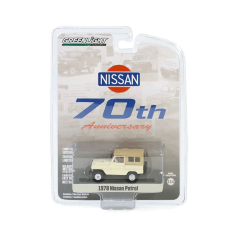 Greenlight – 1978 Nissan Patrol “Nissan 70th Anniversary” (Anniversary Collection Série 16 – Escala 1:64) Este modelo da Greenlight homenageia o robusto Nissan Patrol de 1978, lançado como parte das comemorações dos 70 anos da montadora japonesa. Integrante da Série 16 da coleção Anniversary Collection, esta miniatura em escala 1:64 com aproximadamente 7 cm de comprimento celebra a herança off-road da Nissan com estilo e autenticidade. Especificações do Produto Fabricante: Greenlight Linha/Série: Anniversary Collection Série 16 Modelo: Nissan Patrol 1978 – Nissan 70th Anniversary Montadora: Nissan Cor: Amarelo Escala: 1:64 Comprimento aproximado: 7 cm Composição: Metal, plástico e borracha Edição limitada: Sim Idade recomendada: A partir de 3 anos Dimensões da embalagem: 5,5 cm x 14,5 cm x 19 cm Destaques da Miniatura Pintura amarela vibrante com detalhes comemorativos alusivos aos 70 anos da Nissan Design utilitário com carroceria quadrada, frente elevada e proporções fiéis ao modelo original Parte da coleção Anniversary Collection, dedicada à celebração de marcos históricos da indústria automotiva Estrutura resistente e acabamento refinado, ideal para exposição temática ou coleções de veículos clássicos e off-road Essa miniatura é perfeita para colecionadores que valorizam legado, resistência e autenticidade sobre rodas.
