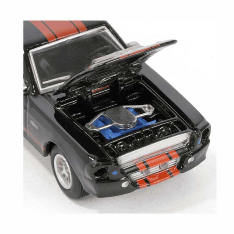 Greenlight – 1967 Ford Mustang “Eleanor” (Barrett-Jackson Série 14 – Escala 1:64) Este modelo da Greenlight presta homenagem ao lendário Ford Mustang “Eleanor” de 1967, eternizado no universo automotivo e cinematográfico. Integrante da Série 14 da coleção Barrett-Jackson, esta miniatura em escala 1:64 com aproximadamente 7 cm de comprimento captura o espírito rebelde e o design agressivo de um dos muscle cars mais icônicos da cultura pop. Especificações do Produto Fabricante: Greenlight Linha/Série: Barrett-Jackson Série 14 Modelo: Ford Mustang 1967 – Eleanor Montadora: Ford Cor: Preto Escala: 1:64 Comprimento aproximado: 7 cm Composição: Metal, plástico e borracha Edição limitada: Sim Idade recomendada: A partir de 3 anos Dimensões da embalagem: 5,5 cm x 14,5 cm x 19 cm Destaques da Miniatura Pintura preta com detalhes prateados e visual fiel ao estilo “Eleanor”, incluindo rodas esportivas e faróis auxiliares Design musculoso com carroceria fastback, frente agressiva e proporções autênticas do Mustang 1967 Parte da coleção Barrett-Jackson, inspirada nos veículos mais desejados e valiosos dos famosos leilões automotivos Estrutura resistente e acabamento refinado, ideal para exposição temática ou coleções de muscle cars e ícones do cinema Essa miniatura é perfeita para colecionadores que valorizam performance, estilo cinematográfico e autenticidade sobre rodas.