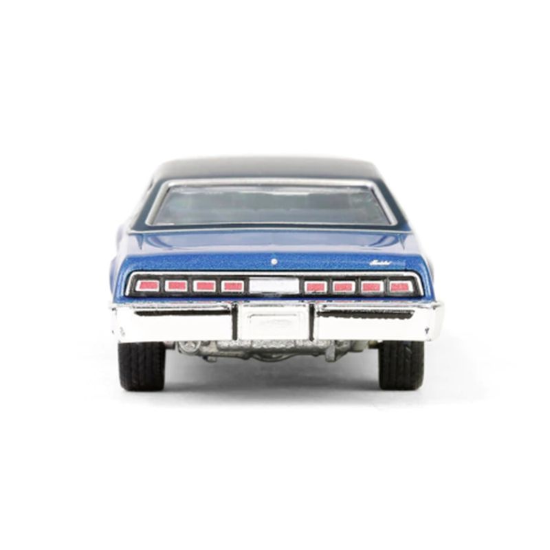 Greenlight – 1974 Ford Thunderbird (Showroom Floor Série 6 – Escala 1:64) Este modelo da Greenlight representa o sofisticado Ford Thunderbird de 1974, integrante da Série 6 da coleção Showroom Floor. Em escala 1:64 e com aproximadamente 7 cm de comprimento, esta miniatura recria com fidelidade o estilo luxuoso e imponente de um dos grandes clássicos da Ford. Especificações do Produto Fabricante: Greenlight Linha/Série: Showroom Floor Série 6 Modelo: Ford Thunderbird 1974 Montadora: Ford Cor: Azul Escala: 1:64 Comprimento aproximado: 7 cm Composição: Metal, plástico e borracha Edição limitada: Sim Idade recomendada: A partir de 3 anos Dimensões da embalagem: 5,9 cm x 14,3 cm x 19 cm Destaques da Miniatura Pintura azul com acabamento elegante e detalhes cromados que destacam o perfil refinado do Thunderbird Design imponente com carroceria longa, frente marcante e proporções fiéis ao modelo original de 1974 Parte da coleção Showroom Floor, dedicada à reprodução de veículos em estado de exposição original Estrutura resistente e acabamento refinado, ideal para exposição temática ou coleções de carros clássicos de luxo Essa miniatura é ideal para colecionadores que valorizam elegância, tradição e autenticidade sobre rodas.