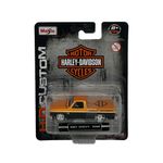 Maisto – 1987 Chevy 1500 H-D Custom (Harley-Davidson Custom – Escala 1:64) Este modelo da Maisto apresenta a clássica Chevrolet 1500 de 1987, estilizada com elementos visuais da linha Harley-Davidson Custom. Em escala 1:64 e com 7 cm de comprimento, a miniatura combina o visual robusto da picape americana com a atitude marcante da cultura custom. Especificações do Produto: Fabricante: Maisto Linha/Série: Harley-Davidson Custom Modelo: 1987 Chevy 1500 Montadora temática: Harley-Davidson Cor: Laranja Escala: 1:64 Comprimento aproximado: 7 cm Composição: Metal, plástico e borracha Idade recomendada: A partir de 3 anos Dimensões da embalagem: 4,5 cm x 11,4 cm x 14,5 cm A miniatura traz carroceria com pintura laranja vibrante, rodas personalizadas e grafismos que remetem à estética Harley-Davidson. A combinação entre o estilo retrô da década de 1980 e os elementos visuais da marca de motocicletas cria uma peça única, ideal para colecionadores que apreciam veículos customizados com identidade forte.