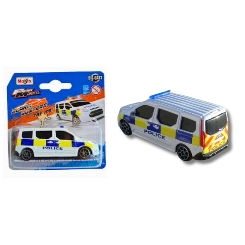 Os carros Alarm Buster Patrol Fresh Metal são uma série de veículos de primeira resposta, incluindo projetos de polícia, bombeiros e ambulâncias. Eles vêm com uma luz azul piscando e uma sirene. Eles medem aprox. 7,5 cm de comprimento.