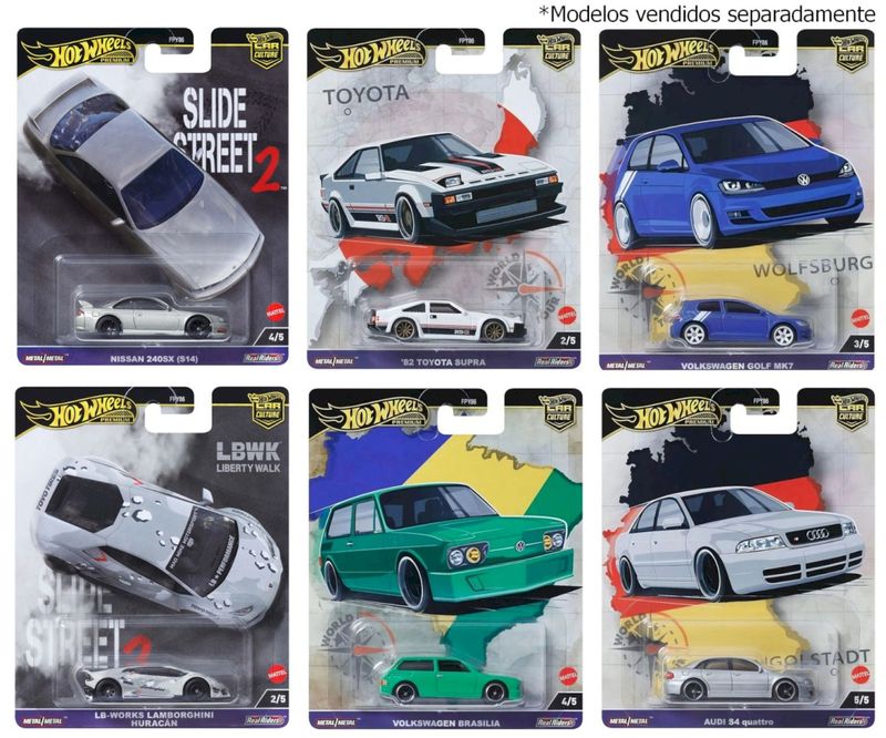 HW Car Culture Marca do produto: Hot Wheels - Mattel. Coleção: HW Car Culture Escala: 1/64 Metal/Metal: Chassi e carroceria feitos de metal Real Riders: Pneus de borracha *Modelos Vendidos Separadamente