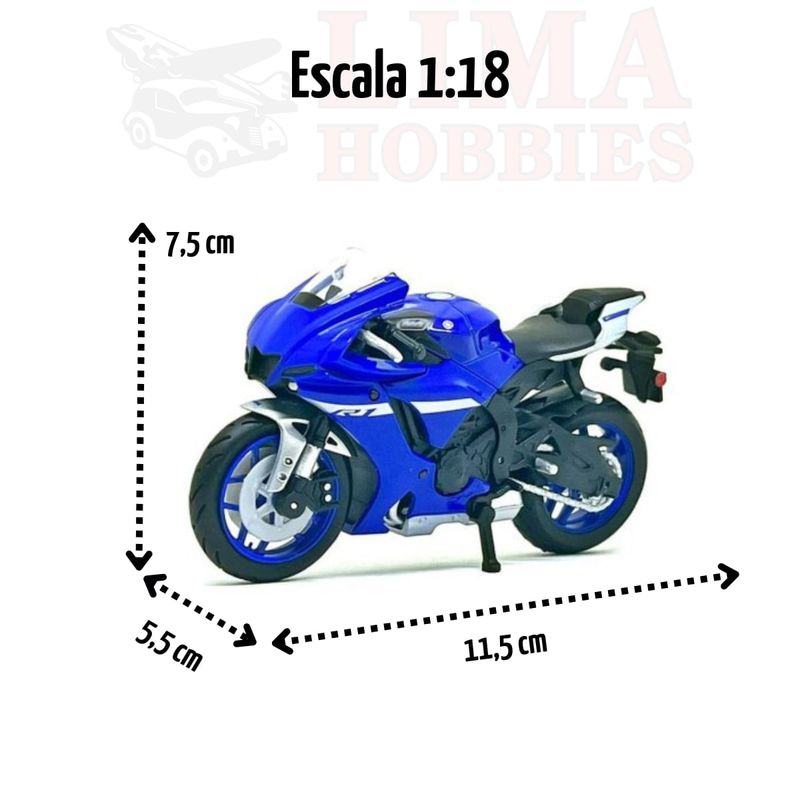 Miniatura de moto Yamaha R1, 2021, na escala 1:18.