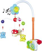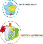Os bebês dormirão mais tranquilos com esse Móbile Musical da Zoop Toys. Ele possui 26 músicas diferentes, luzes, rotação, timer para 5 ou 15 minutos de melodias e brinquedos que ficam pendurados. Características: Material: plástico 3 bichinhos e 1 cogumelo Acende a luz quando canta Toca um total de 26 músicas diferentes Estimula coordenação motora Estimula visão e audição Para maiores de 2 meses