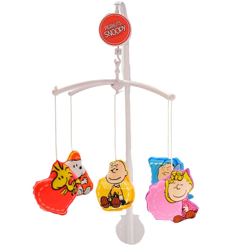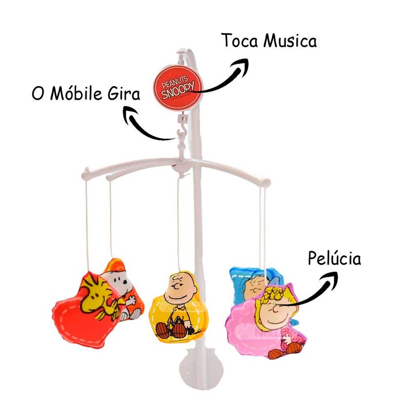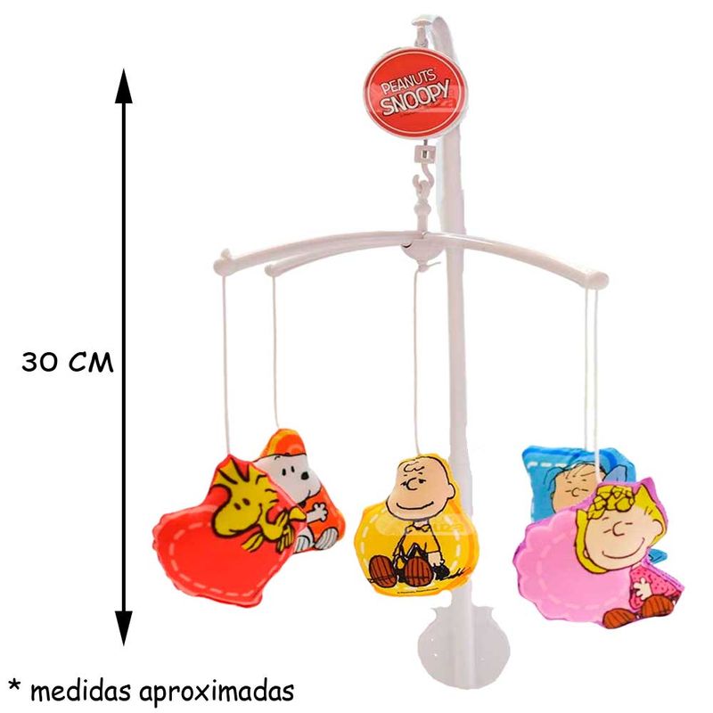 O Móbile Musical do Snoopy vem com figuras do personagem fabricadas em tecido de cores variadas com enchimento macio fácil para lavagem.