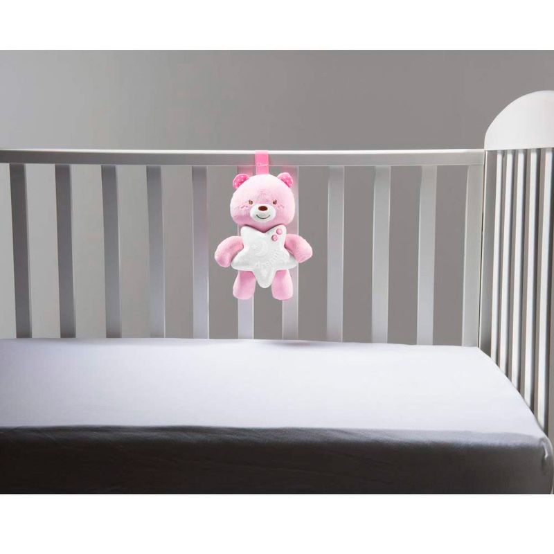 O Móbile - Ursinho Bons Sonhos da Chicco é Um macio ursinho de pelúcia de fácil fixação em berços ou camas, que conta com melodias, sons da natureza e suave luz noturna que criam a perfeita atmosfera para a hora de dormir.