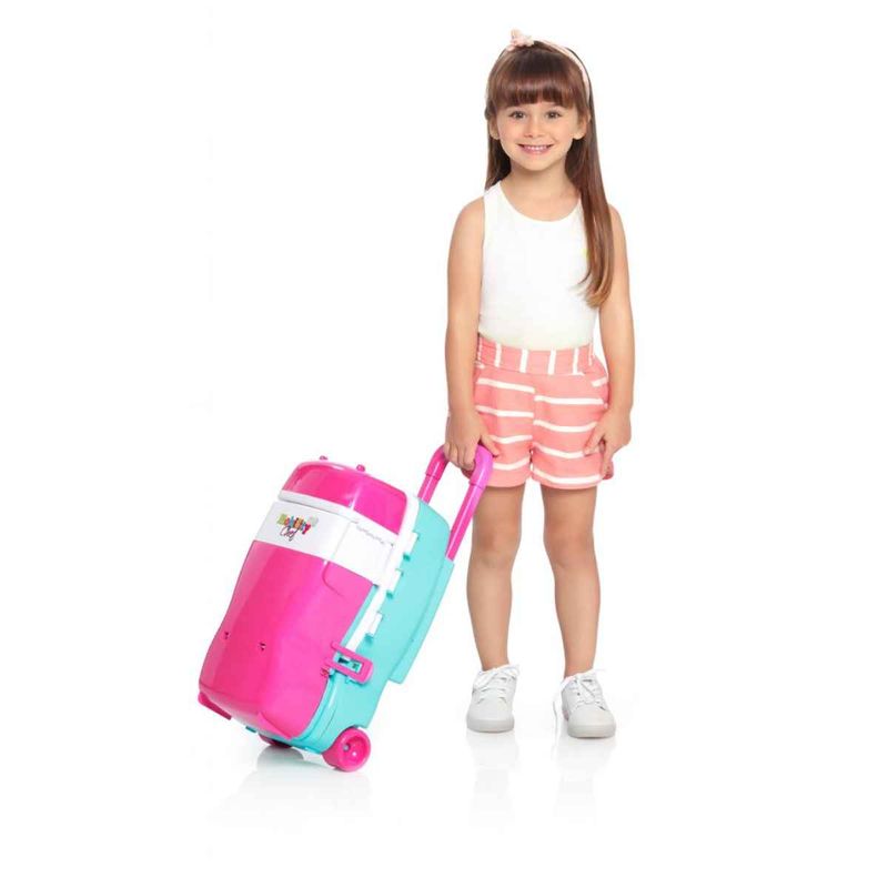 Uma cozinha completa em um só brinquedo! Esta super maleta se transforma em uma cozinha completa! Tem fogão, forninho, pia, gavetas, torradeira e uma geladeira com filtro de água na porta que sai água de verdade! A brincadeira fica completa com panelinhas, pratinhos e talheres e frutas, e caixinhas.