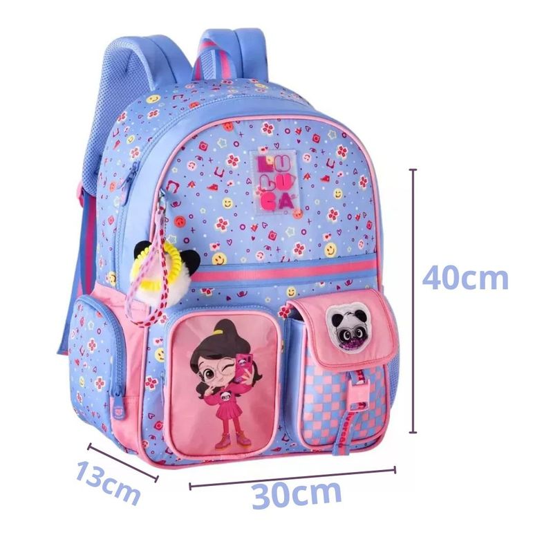 - Guarde o produto em um local seco e arejado; - Para a limpeza, utilize apenas pano úmido e sabão neutro; - Não deixar de molho; - Não imergir em água; - Não utilizar componentes químicos, solventes ou alvejantes; - Evite o excesso de peso no produto para não forçar os zíperes e costuras; - Proteja os objetos cortantes e/ou pontiagudos evitando o contato direto com o produto; - Evite dobrar o produto para não danificar as estampas; - Secar à sombra; Mochila de Costas oficial luluca Sucesso no youtube e no volta às aulas clio, luluca a apresenta a nova coleção repaginada para deixar as 32 milhões de pandinhas (fãs) encantadas. Na clio, ela estreia com uma coleção super descolada e alto astral. Se divirta junto com a gente e não se esqueça de deixar o seu lulike. A mochila de costas oficial da luluca é confeccionada em poliéster soft com silk, matelassê, possui compartimento para laptop.