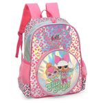 MOCHILA DE COSTAS LUXCEL LOL SURPRISE Mochila com bolsos laterias em tela com elástico, alças de costas espumadas e reguláveis, silk frontal, bolso frontal com zíper, alça de mão e etiquetas personalizadas. Características Principais: Dimensões: Aproximadamente 41 x 30 x 14cm (AxLxP). Volume: Aproximadamente 17 Litros. Garantia contra defeito de fabricação.