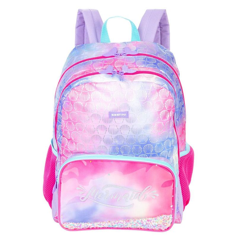 MOCHILA DE DE COSTAS SESTINI PSG M01 O mundo marinho – principalmente as sereias – fazem um sucesso e tanto entre as meninas! E essa coleção é aposta certa para agradar. Logo de cara, a estampa metalizada do painel frontal e lateral chama a atenção, cheia de conchas. Os puxadores tem formato da cauda das sereias. E no bolso da frente, confetes se movem como areia na praia. A versão com alça de costas e reforço na costura tem dois compartimentos, perfeito para separar materiais e organizar os pertences da criança. Composição: 100% Poliéster. Capacidade: 20,4L. Dimensões: 40 x 30 x 17cm (AxLxP). Garantia contra defeitos de fabricação