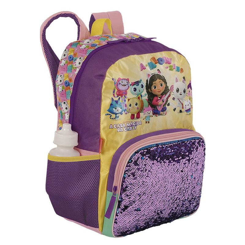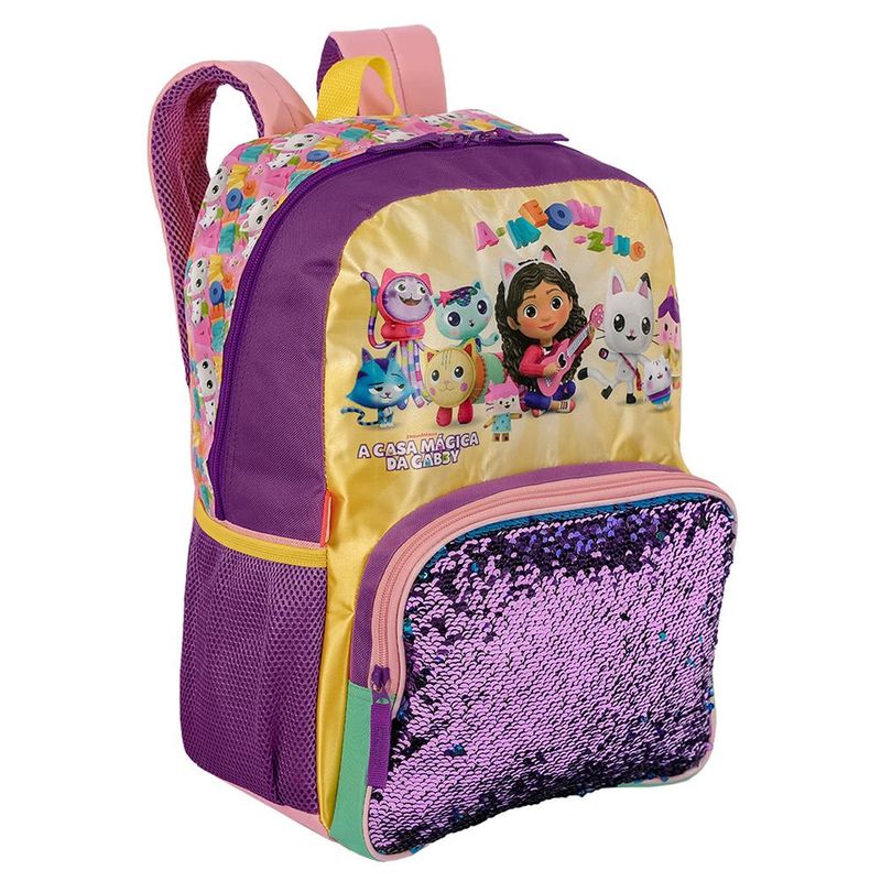 MOCHILA ESCOLAR DE COSTAS SESTINI M PLUS MEOW Mochila escolar Sestini com alças de costas espumadas e reguláveis, bolso lateral em tela com elástico, tag identificador, painel frontal em cetim e etiquetas personalizadas. Características Principais: Dimensões: Aproximadamente 30 x 42 x 18cm (LxAxP). Volume: Aproximadamente 19 Litros. Garantia contra defeito de fabricação.