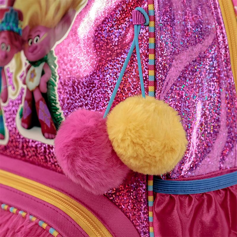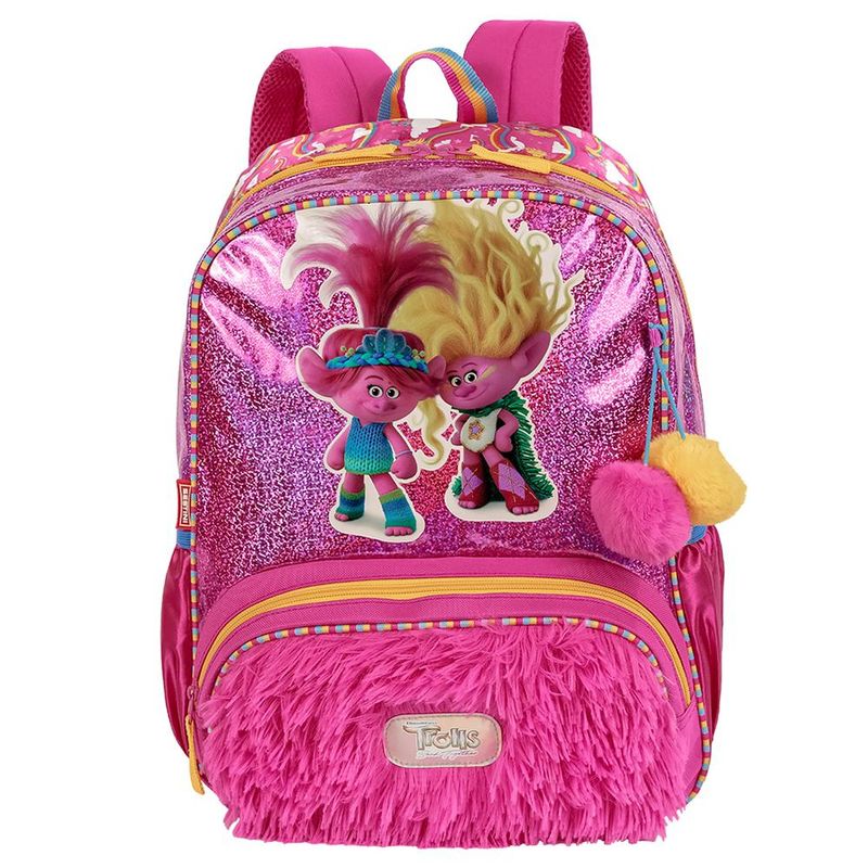 MOCHILA ESCOLAR DE COSTAS SESTINI TROLLS X SISTER Mochila escolar Sestini com alças de costas espumadas e reguláveis, bolso lateral com elástico, tag identificador, painel personalizado e etiquetas personalizadas. Características Principais: Dimensões: Aproximadamente 31 x 41 x 20 (LxAxP). Volume: Aproximadamente 25,4 Litros. Garantia contra defeito de fabricação.