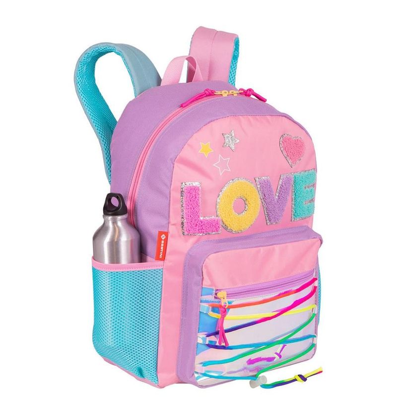 MOCHILA ESCOLAR DE COSTAS SESTINI Mochila escolar Sestini com alças de costas espumadas e reguláveis, bolso lateral em tela com elástico, tag identificador, painel frontal em cetim e etiquetas personalizadas. Características Principais: Dimensões: Aproximadamente 31 x 40 x 18cm (LxAxP). Volume: Aproximadamente 19 Litros. Garantia contra defeito de fabricação.