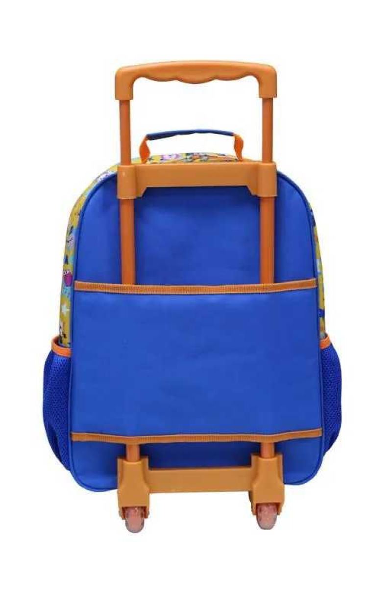 Ideal para comportar materiais e todos os objetos necessários para a fase escolar, rodinhas, bolsos laterais para garrafa, haste dupla e colorida.