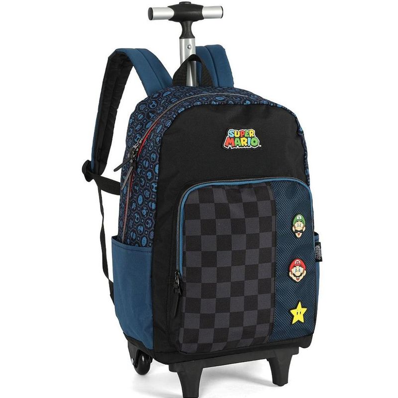 Mochila de Rodinhas Com Alça Luxcel Mario Bros Patch Azul