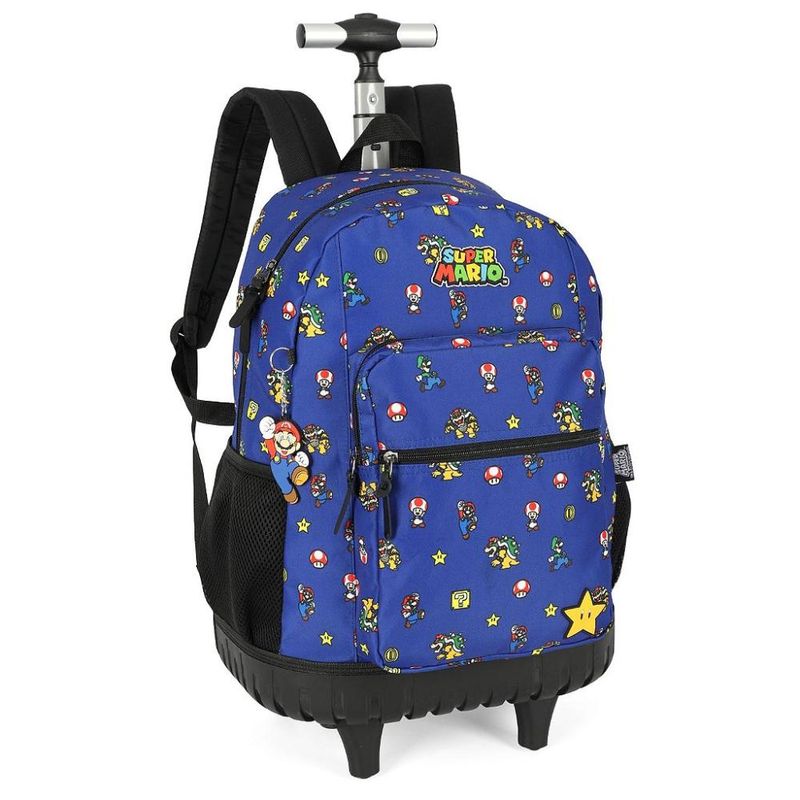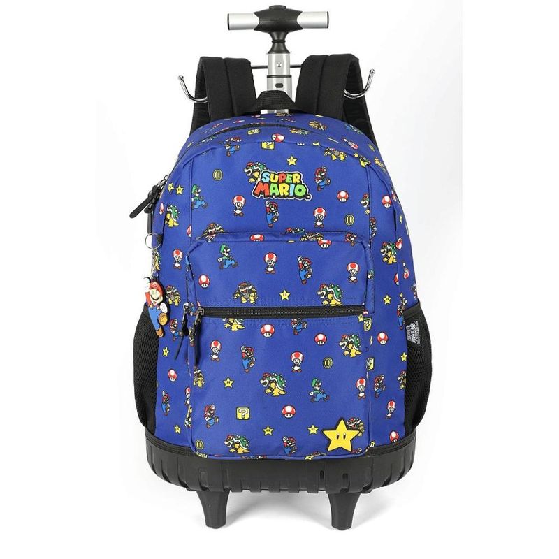 MOCHILA DE RODINHAS COM ALÇA LUXCEL Mochila de rodinhas com alça, bolsos laterias em tela com elástico, alças de costas espumadas e reguláveis, silk frontal, bolso frontal com zíper, alça de mão e etiquetas personalizadas. Características Principais: Dimensões aproximadas: Mochila 46 x 34 x 22cm (AxLxP). Garantia contra defeito de fabricação.
